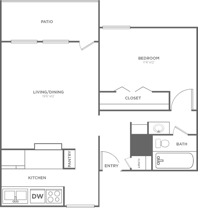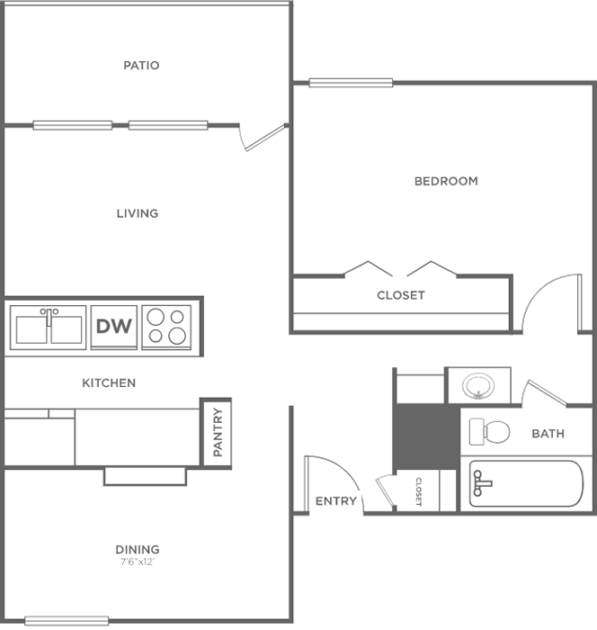 An efficient one bedroom layout with comfortable living space and an easy everyday flow.